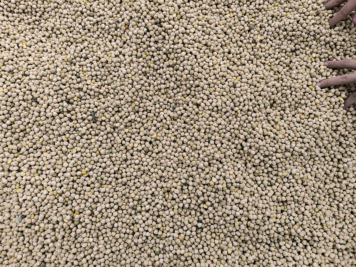 Les deux paysans option mécano nourrissent la moissonneuse au gasoil et, par souci d’économie et de potacherie, à l’huile de friture usagée. Les pois chiches, avalés en même temps que la plante, sont battus, soufflés et secoués dans le ventre de la machine. « Comme la moissonneuse est vieille et non insonorisée, on entend la musique du grain qui tombe dans le réservoir, indique François, au volant. À l’oreille, je sais que tout se passe bien. » De son côté, Louis navigue entre la terre et le toit de l’engin pour vérifier les réglages. Les graines sont triées à travers une grille dont la maille est choisie en fonction de leur taille, puis déversées dans des caisses agricoles. En raison des pluies récentes, salutaires pour les cultures, le séchage sera peaufiné en plein air.