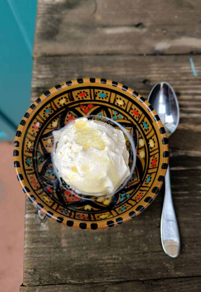 Un dessert simple et original. Déposez une ou deux boules d’une bonne glace à la vanille bien froide dans une coupe. Versez un filet d’huile d’olive, fruité vert pour le peps ou fruité noir pour la rondeur. Ajoutez une pincée de fleur de sel pour faire vibrer l’ensemble. Servez aussitôt.